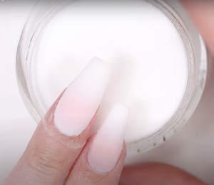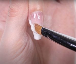 Trage jetzt eine Schicht Base Coat auf jeden Nagel auf und lasse ihn trocknen. Dies hilft, eine gute Haftung des Pulvers auf den Nägeln zu gewährleisten und schützt gleichzeitig auch deinen Naturnagel.