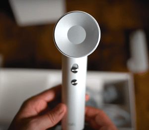 Der Styler von Laifen hat einen modernen, cleanen Look und eine magnetische Düse, die sich um 360 Grad drehen kann. Daneben ist ein LED-Leuchtring an der Oberseite des Produkts angebracht. Dieser Leuchtring zeigt durch die Farben rot, gelb und blau an, wie warm das Stylinggerät ist. Praktisch! 🙂