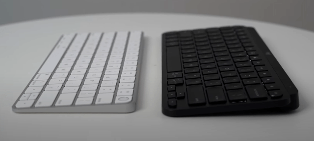 Wenn man sich beide Modelle von der Seite anschaut, fällt auf, dass die von Logitech in einem etwas größeren Winkel steht. Die Tasten liegen dadurch etwas höher. Das bedeutet zwar, dass die MX Keys Mini Tastatur beim Verstauen mehr Platz einnimmt, wir fanden das Schreiben auf ihr allerdings angenehmer.